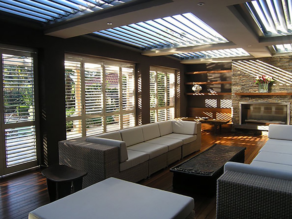 Responding to the client's need for more entertainment space, this outdoor living room straddles an old swimming pool that now serves as a rainwater reservoir. Designed in a similar way to an internal room, this tranquil space features a retractable roof to let sunshine penetrate adjacent rooms and to maximise airflow and shade for summer comfort. All interior elements are water resistant and designed to accommodate weather penetration. This project was recognised by the BDA in 2005 with awards for best interior, best alteration and best project.